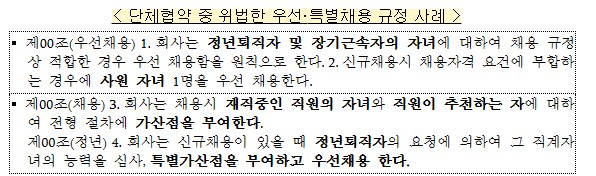- 노조 추천인 우선채용: 불법