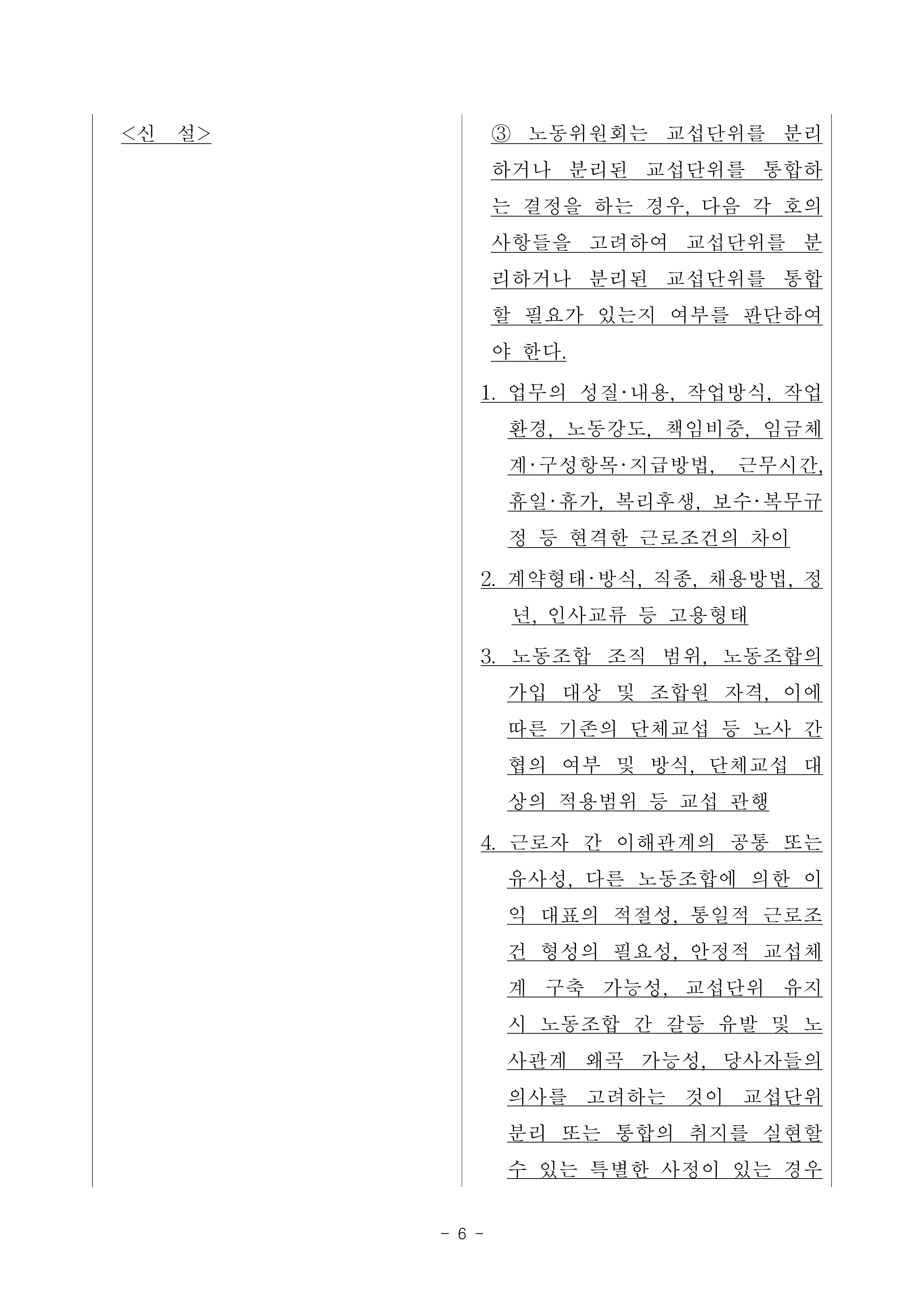 노동위는 △업무 성질·근로조건의 현격한 차이, △직종·계약형태·채용 방식 등 고용형태, △노조 조직범위 및 기존 교섭 관행, △이해관계의 공통성·통일적 근로조건 필요성, △노조 간 갈등 가능성, △당사자의 의사를 종합적으로 검토하여 결정합니다.
